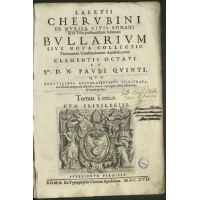 Laertii Chervbini De Nvrsia Civis Romani & in Vrbe praestantissimi Aduocati Bvllarivm Sive Nova Collectio Plurimarum Constitutionum Apostolicarum. T. 3, Clementis Octavi Et SMI S. D. N. Pavli Qvinti - Cherubini, Laerzio (15..-ca 1626)Laertii Chervbini De Nvrsia Civis Romani & in Vrbe praestantissimi Aduocati Bvllarivm Sive Nova Collectio Plurimarum Constitutionum Apostolicarum. T. 3, Clementis Octavi Et SMI S. D. N. Pavli Qvinti - Cherubini, Laerzio (15..-ca 1626)