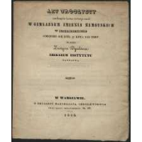 Akt uroczysty zamknięcia kursu rocznego nauk w Gimnazyum imienia Zamoyskich w Szczebrzeszynie : odbędzie się dnia 19/31 lipca 1838 roku, na który zastępca dyrektora imieniem Instytutu zaprasza.Akt uroczysty zamknięcia kursu rocznego nauk w Gimnazyum imienia Zamoyskich w Szczebrzeszynie : odbędzie się dnia 19/31 lipca 1838 roku, na który zastępca dyrektora imieniem Instytutu zaprasza.